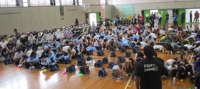 小学校・中学校・地域・警察・消防・大学・企業・JICAが一体となって、防災訓練に取り組みました。