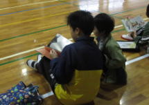 体育館では、ゆりかごの会による読み聞かせに加え、6年生が1年生に読み聞かせを実施しました。6年生の優しい笑顔や声掛けのおかげで、1年生は笑顔で身を乗り出して本の世界を楽しんでいました。2年〜5年は、各クラスで読書を楽しみました。