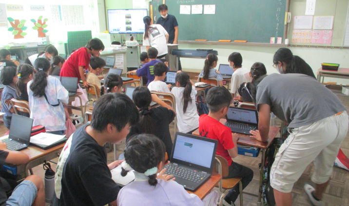 1学期も実施した縦割り活動。上級生が下級生の教室を周り、折紙を使って折り鶴を教えました。
