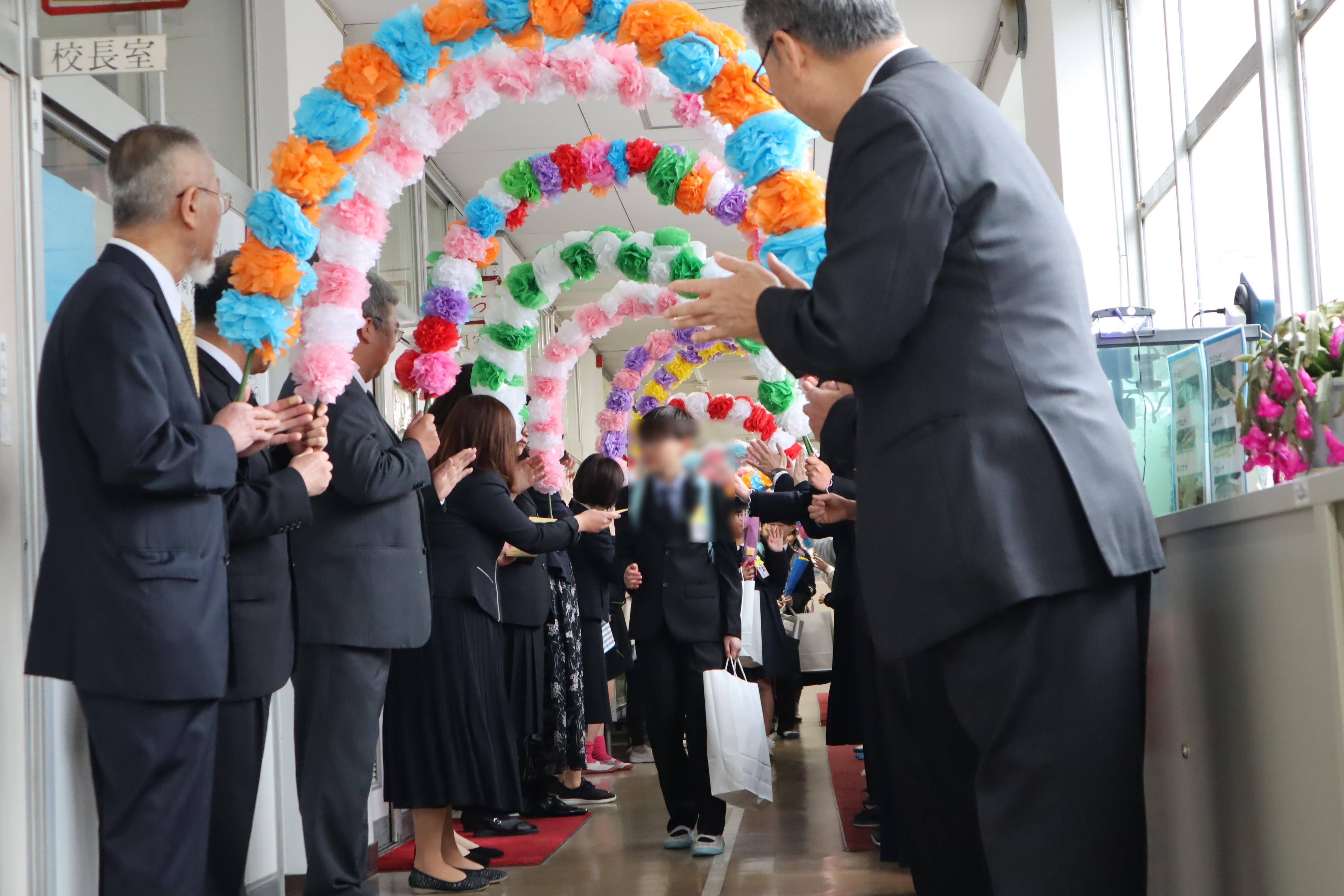 | 3月18日(水) 「6年生 巣立っていきました!!」 本日、6年生が本校を卒業しました。 あいにくの雨模様での開催となりましたが、 お陰様で 滞りなく実施できました。 卒業生も 5年生も 一人ずつが 思いを言葉にのせて 会場いっぱいに声を届けました。 写真は、見送りの様子です。 雨天のため、廊下での見送りとなりましたが、 学童のみんなや来賓の方も見送りに参加していただきました。 「心温まるよい式でしたね・・。」との声も聞かれた卒業式でした。 |