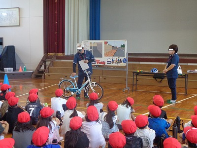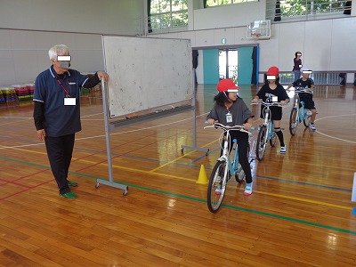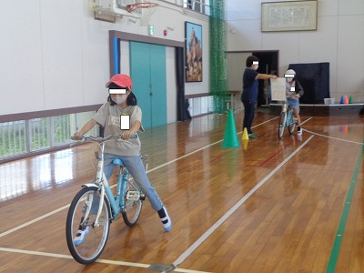 3、4時間目に4年生が自転車教室を行いました。北九州交通公園の皆様にご来校いただき、自転車に乗る前の自転車点検の仕方、正しい道路の通行の方法等を教えていただきました。お話を聞くだけでなく、体育館の中を実際に道路に見立てて自転車で通行し、左右が見通せない「止まれ」の標識での左右確認の仕方などたくさんの事を学びました。今日教えていただいたことを、これからぜひ実践して事故やケガのないようにしてほしいと思います。そして、自転車に乗るときは、必ずヘルメットをかぶって、交通規則を守り、車やバイク、歩行者に気をつけて安全に乗るようにしましょう。