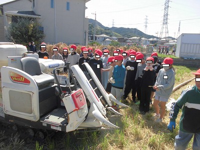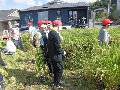 今日、地域の方々にご協力いただき、 1学期に田植えをした田んぼの稲刈り作業を行いました。最初は、使い慣れない鎌に戸惑っていた子ども達でしたが、だんだんと慣れてきて最後には手際よく稲刈りを行うことができるようになってきていました。農家さんの努力や稲作への想いについて触れる、とてもいい機会になったのではと思います。なお、ご家庭の皆様には、本活動のための服装や軍手など、いつもとは異なる準備にご協力いただき、ありがとうございました。