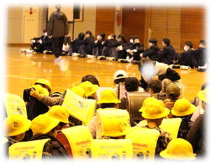 11月19日に門司中学校校区の防災訓練を行いました。初めての合同での訓練でした。中学生が各出身小学校へ行き、同じ方向の児童とともに市民センターや門司中学校まで避難を行いました。児童は、中学生とともに真剣な表情で緊張しながらも避難訓練ができました。門司中学校校区は、土砂災害に加え南海トラフ地震の際、5mの津波が想定されています。どんな災害があっても顔見知りの子ども同士が助け合って自らの命を守る行動にでてほしいと願っています。