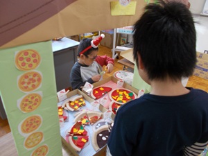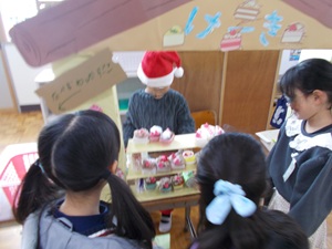 〇きらきら2組が自立活動の学習(コミュニケーション)で、交流学級を招待してクリスマスマーケットを開催しました。