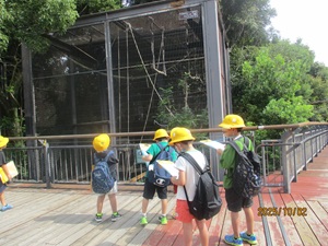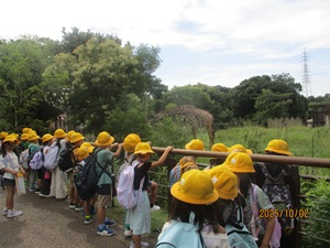 〇1年生が生活科と国語の学習に関連して、いとうづの森公園に動物の見学に行きました。