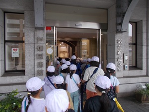 〇3年生が、社会科の学習で「町たんけん」に行きました。