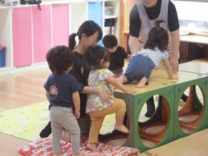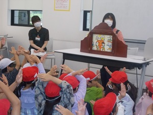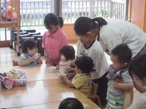 〇5年生が、総合的な学習の時間の学習で、保育者体験を行いました。