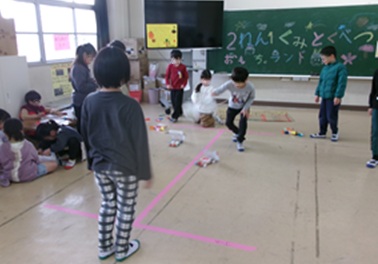 〇2年生の各クラスが、「おもちゃランド」を開催して、1年生を招待しました。