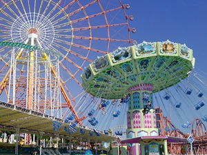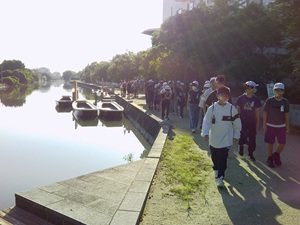 左から折り鶴の献納、柳川の掘割散策、グリーンランド