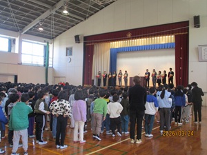 〇3月24日に、修了式・離任式が行われました。13名の教職員が転出します。