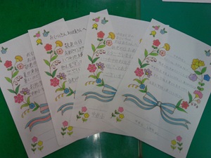 9月:地域の敬老会に向けて、全校児童がお祝いのメッセージを書きました。