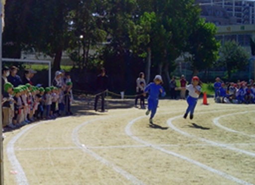 体育発表会リハーサルの日に、光沢寺第二保育園の園児さんが見学に来て、大きな声で声援をしてくれました。