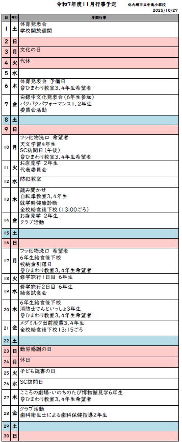※予定は変更になることがあります。下の行事予定をクリックするとPDFファイルが開きます。下にスクロールしてご確認ください。