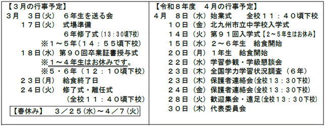| 2026. 2.24 「2・3月学校通信」「3給食献立」を載せています。 |