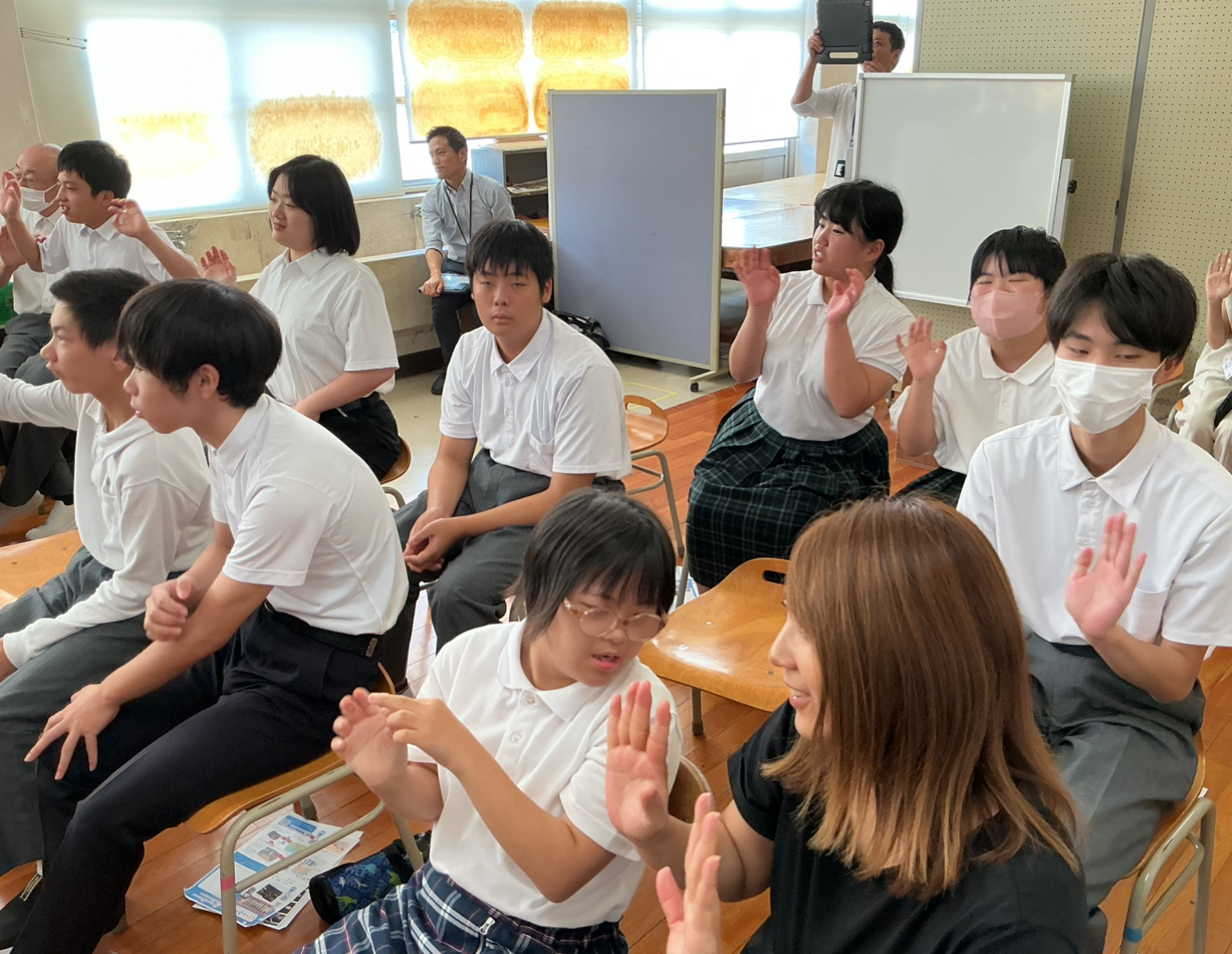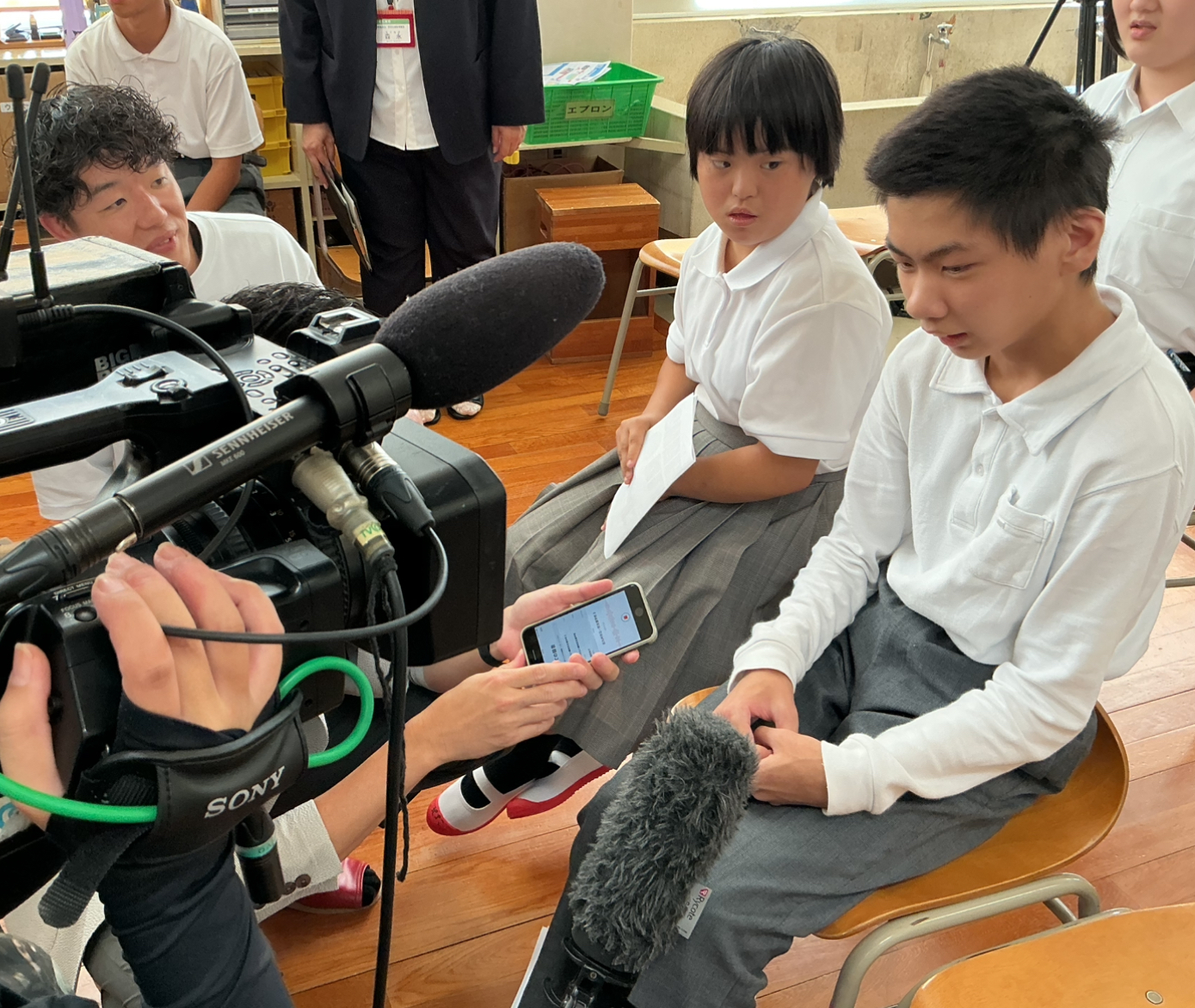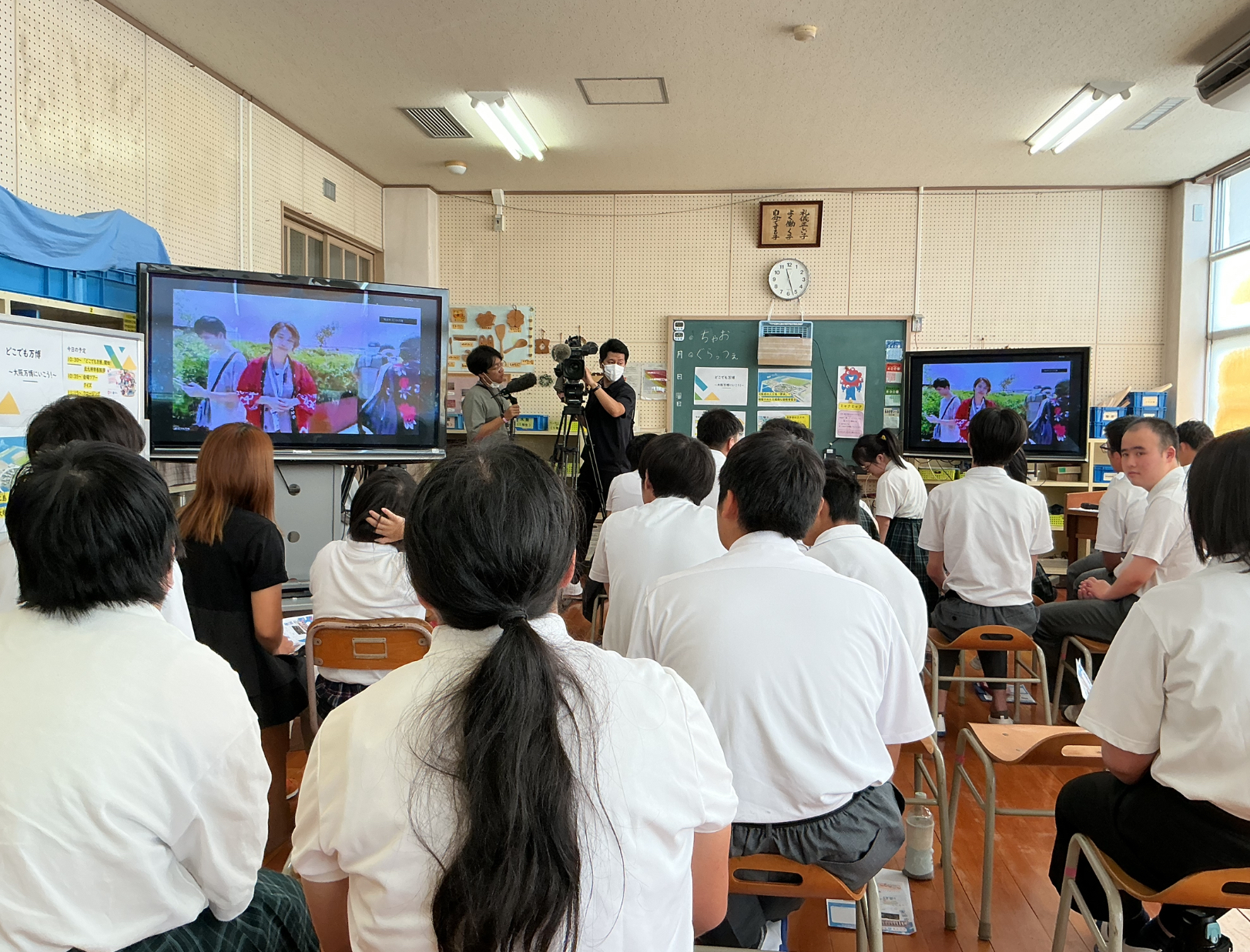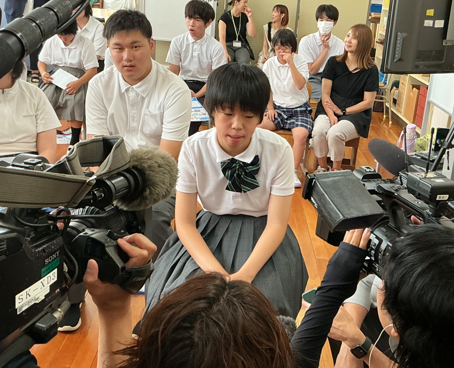 | 【本校高等部がTV放映されました!】 8月27日「どこでも万博」に高等部生徒が参加した様子をNHKとTVQから取材され、番組で取り上げら れました。「どこでも万博」は、大阪万博の会場と本校教室がオンラインでリアルタイムにつながり、会場 にいるロボットを通して、実際にイタリア館を見学・体験したり、会場のスタッフや来場者と交流したりす る取組です。自治体として初めて北九州市が取組を進め、本校や市内特別支援学校の子どもたちがオンライ ン上で同時につながり、特別な体験をしました。 |